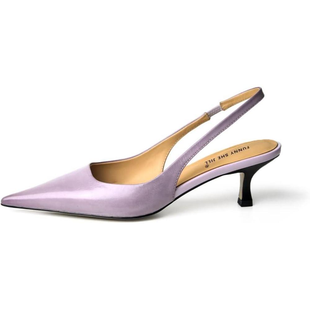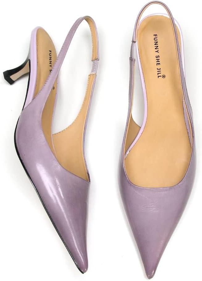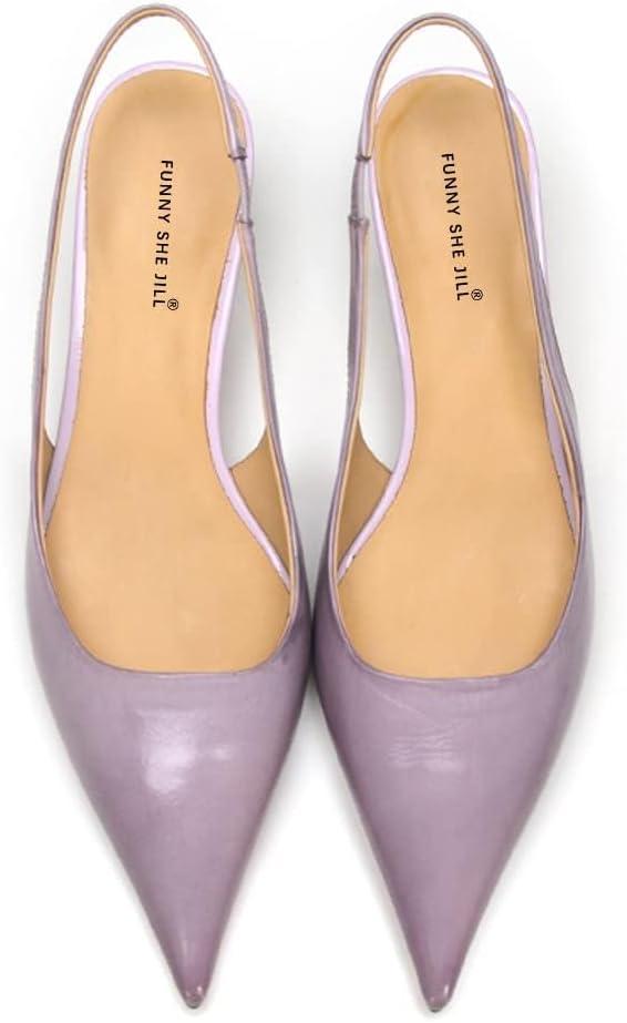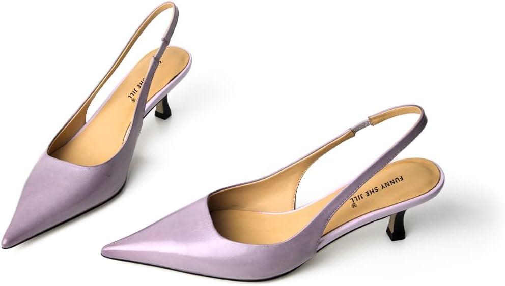 FSJ Women’s Mid Kitten Heel Slingback Sandals Pointy Toe Sexy Stiletto Pumps Comfortable Dress Summer Party Shoes Size 4-15 US(Lavender)