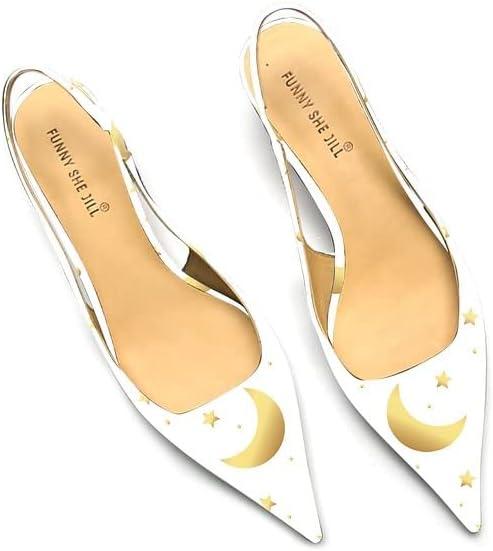 FSJ Women’s Mid Kitten Heel Slingback Sandals Pointy Toe Sexy Stiletto Pumps Comfortable Dress Summer Party Shoes Size 4-15 US(Moon and Stars)