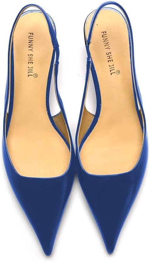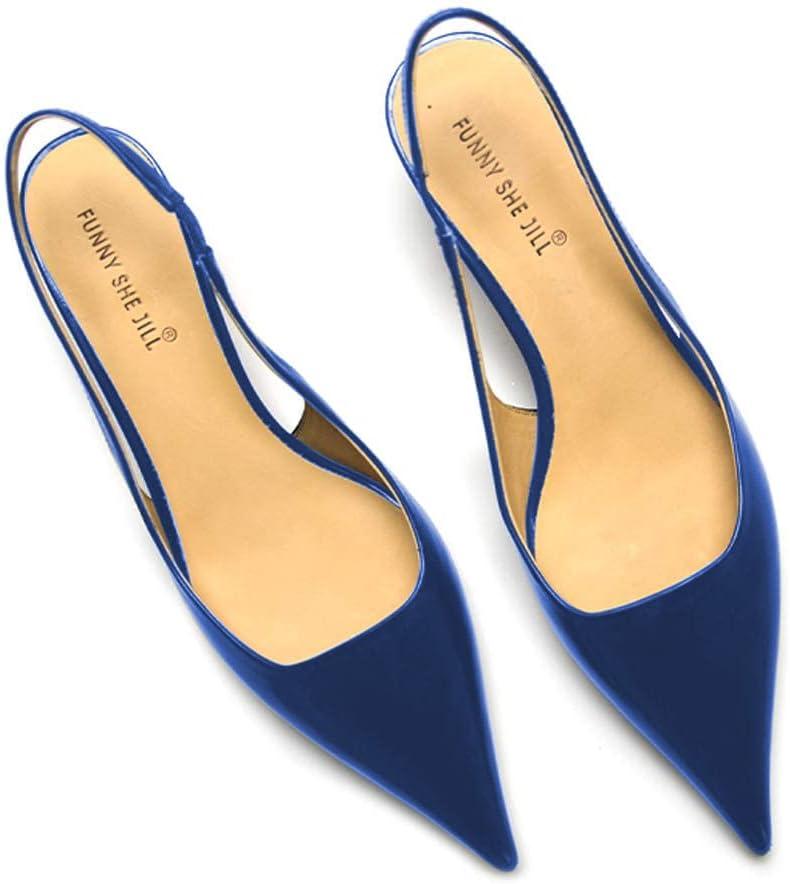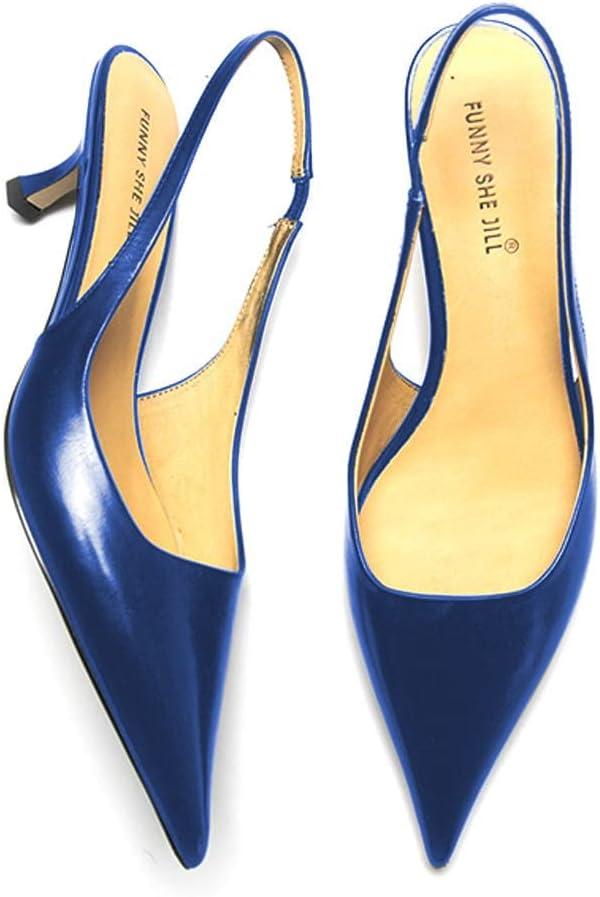 FSJ Women’s Mid Kitten Heel Slingback Sandals Pointy Toe Sexy Stiletto Pumps Comfortable Dress Summer Party Shoes Size 4-15 US(Royal Blue)