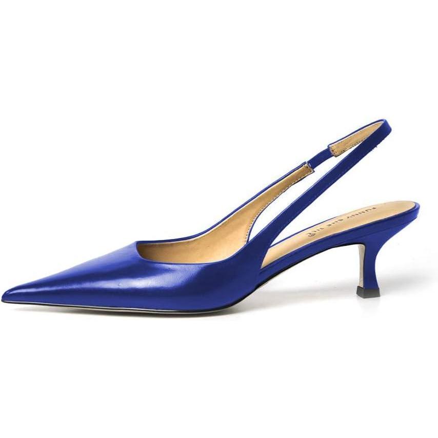 FSJ Women's Mid Kitten Heel Slingback Sandals Pointy Toe Sexy Stiletto Pumps Comfortable Dress Summer Party Shoes Size 4-15 US(Royal Blue)