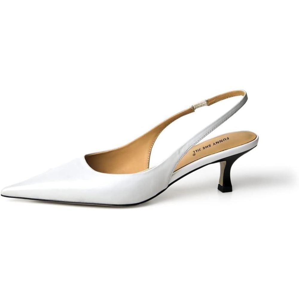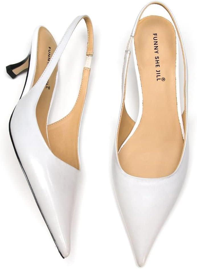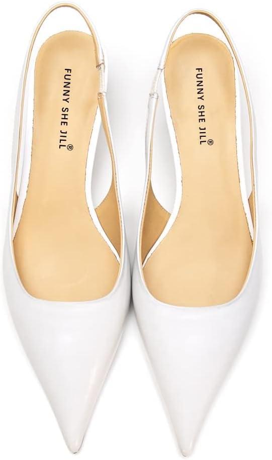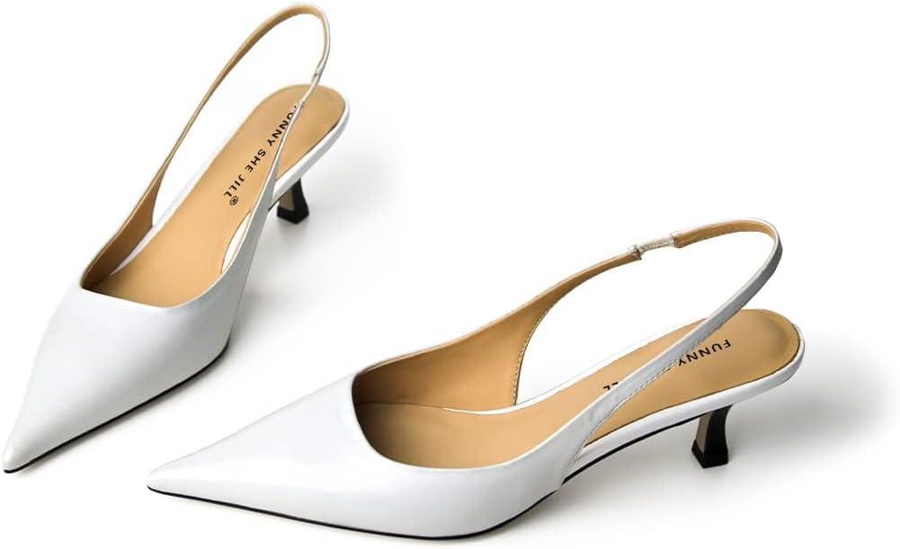 FSJ Women’s Mid Kitten Heel Slingback Sandals Pointy Toe Sexy Stiletto Pumps Comfortable Dress Summer Party Shoes Size 4-15 US(White Heart)